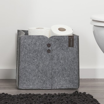 Het Sealskin Opbergmand Felt Vilt Grijs is gemaakt uit vilt. Het mandje heeft een inhoud van 2,7 liter. In dit mandje kan je allerlei kleine badkamerspullen opbergen, zoals bv. een handdoek, haardroger, toiletpapier... Het mandje Felt zorgt voor een opgeruimde badkamer of toilet en is ideaal om te combineren met een wasmand uit het Sealskin assortiment.