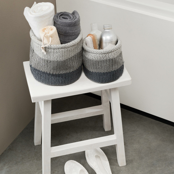 De Sealskin Opbergmand Knitted 20x20 cm Grijs is gemaakt uit grijs-kleurig gebreid textiel en is een echte eyecatcher in jouw interieur. De gebreide structuur is zacht, maar de acrylvezel maakt de stof sterk. Deze mand heeft een inhoud van 6 liter en een afmeting van 20 cm breed, 20 cm diep en 20 cm hoog. Zo berg je allerlei kleine losse spulletjes, zoals toiletartikelen, perfect netjes op. De gebreide stof heeft 3 horizontale strepen in verschillende grijstinten. De eigentijdse uitstraling staat mooi in jouw moderne badkamer. Als je wil, kun je het mandje natuurlijk ook in andere ruimtes gebruiken. In deze uitvoering kun je ook een wasmand van 35 liter kopen bij Gamma. De opberg- en wasmanden van Sealskin zijn in meerdere uitvoeringen verkrijgbaar en kun je daardoor altijd goed combineren met de Sealskin douchegordijnen.
