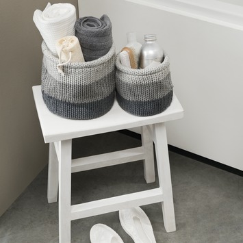 Het Sealskin Opbergmand Knitted Acryl Grijs is gemaakt uit textiel. Dit gebreide mandje heeft een warm uiterlijk door de kleurencombinatie in grijstinten. Het mandje heeft een inhoud van 2,5 liter. In dit mandje kan je allerlei kleine badkamerspullen opbergen, zoals bv. een handdoek, haardroger, toiletpapier... Het mandje Knitted zorgt voor een opgeruimde badkamer of toilet en is ideaal om te combineren met een wasmand uit het Sealskin assortiment.