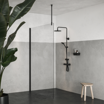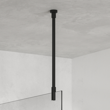 Deze universele plafondsteun van 80 cm kan gebruikt worden om je glazen douchewand van 6, 8 of 10 mm te stabiliseren aan het plafond. Je hebt dan geen horizontale steun nodig. Deze variant heeft een stoere matzwarte afwerking. De minimale afstand tussen de bovenzijde van het glas en het plafond is 76 mm. De maximale afstand is 836 mm.