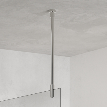 Deze universele plafondsteun van 80 cm kan gebruikt worden om je glazen douchewand van 6, 8 of 10 mm te stabiliseren aan het plafond. Je hebt dan geen horizontale steun nodig. Deze variant heeft een tijdloze zilver hoogglans afwerking. De minimale afstand tussen de bovenzijde van het glas en het plafond is 76 mm. De maximale afstand is 836 mm.