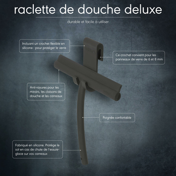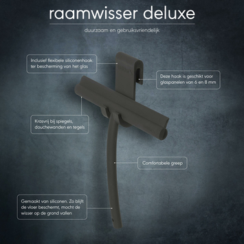 Met deze Sealskin raamwisser deluxe zwart houd je het glas van je douchecabine mooi streep- en kalkvrij. Deze Sealskin raamwissel deluxe komt met een flexibele glashaak, waardoor de wisser binnen handbereik kan ophangen. Gebruik deze Sealskin raamwisser deluxe door na elke douchebeurt even het water van het glas te verwijderen. De glashaak is flexibel en geschikt voor zowel 6mm als 8mm glas.