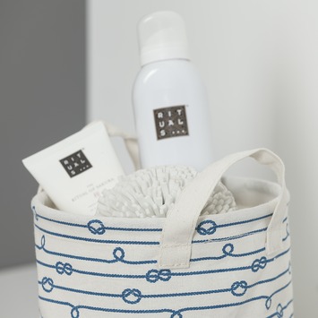 De Sealskin Mandje Rope Ecru Rond is jouw perfecte metgezel voor een georganiseerde badkamer. Dit praktische mandje, gemaakt van stevig textiel, heeft een inhoud van maar liefst 3 liter, waardoor je voldoende ruimte hebt voor al je kleine benodigdheden zoals handdoeken, toiletpapier of een haardroger. Dankzij de twee handige grepen neem je het mandje eenvoudig mee waar je ook maar wilt. De beige kleur met een speelse print geeft een frisse uitstraling aan je ruimte en zorgt voor een stijlvolle touch. Maak een einde aan de rommel en geniet van de opgeruimde sfeer die dit mandje in je badkamer of toilet brengt.