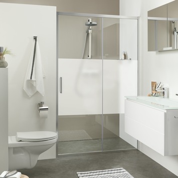 Sealskin heeft enorm veel douchewanden, douchedeuren en douchecabines binnen verschillende series en stijlen. Deze Sealskin Schuifdeur voor Nis Style 120x195 cm met Gesatineerde Band is daar een van. Deze schuifdeur is ook als swingdeur voor nis verkrijgbaar en je hebt de keuze tussen helder glas of juist een deur met een gesatineerde band zoals deze. Bij de Sealskin Style wordt gebruik gemaakt van een slimme montage techniek. Na de montage zijn er geen schroeven meer zichtbaar. Het glas is extra veilig en 6 mm dik. Dat maakt dit een stevige douchewand die een lange tijd mee kan. Tot slot is deze swingdeur zowel link- als rechtsdraaiend te monteren in een nis. De keuze is geheel aan jou.