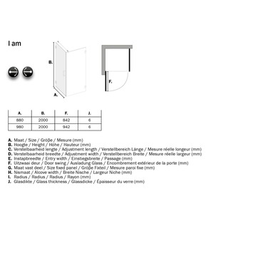 Sealskin Swingdeur voor Douchewand I AM 200x100 cm RVS, 8mm helder veiligheidsglas + antikalk. De volledig profielloze serie 'I AM' is met recht een transparante alleskunner. Naast diverse standaard maatvoeringen zijn talloze maatwerkoplossingen mogelijk. Zo kunnen we de breedte en hoogte aanpassen, maar bijvoorbeeld ook eventuele schuintes in de muren of het plafond opvangen. Deze draaideur, gecombineerd met een vaste zijwand, maken een moderne, transparante douche. Het veiligheidsglas van maar liefst 8mm is altijd voorzien van een antikalk laag waardoor kalk en viezigheid zich minder snel zal hechten. De scharnieren van I AM zijn zelfsluitend. Dat zorgt ervoor dat de deur automatisch naar zijn nulpunt gaat; hij gaat dus vanzelf dicht! Bovendien is dat nulpunt in te stellen. Je kunt je deur dus onder een hoek plaatsen en zo een unieke oplossing maken.I AM draaideuren voor combinatie met zijwand zijn ook beschikbaar in de standaardmaat 900mm en natuurlijk als maatwerk oplossing. De scharnieren en grepen zijn tevens beschikbaar in luxueus chroom en in een unieke matzwarte afwerking.