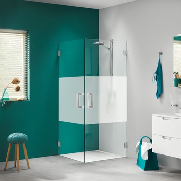 Sealskin Swingdeur voor Hoekinstap I AM R 90x200 cm RVS met Gesatineerde Band, 8mm helder veiligheidsglas met gesatineerde band + antikalk coating. De volledig profielloze serie 'I AM' is met recht een transparante alleskunner. Naast diverse standaard maatvoeringen zijn talloze maatwerkoplossingen mogelijk. Zo kunnen we de breedte en hoogte aanpassen, maar bijvoorbeeld ook eventuele schuintes in de muren of het plafond opvangen. Deze draaideur, gecombineerd met een tweede draaideur (hoekinstap), maken een transparante en ruime douche. Dit artikel is de rechts te monteren variant, de links te monteren variant is ook in de GAMMA webshop te koop. Dat is namelijk de: Sealskin Swingdeur voor Hoekinstap I AM L 90x200 cm RVS met Gesatineerde Band. Het veiligheidsglas van maar liefst 8mm is altijd voorzien van een antikalk laag waardoor kalk en viezigheid zich minder snel hecht. De scharnieren van I AM zijn zelfsluitend. Dat zorgt ervoor dat de deur automatisch naar zijn nulpunt gaat; hij gaat dus vanzelf dicht! Bovendien is dat nulpunt in te stellen. Je kunt je deur dus onder een hoek plaatsen en zo een unieke oplossing maken. I AM draaideuren zijn ook beschikbaar in de standaardmaat 1000mm en natuurlijk als maatwerk oplossing. De scharnieren en grepen zijn tevens beschikbaar in luxueus chroom en in een unieke matzwarte afwerking.