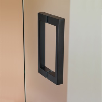De volledig profielloze serie 'I AM' is met recht een transparante alleskunner. Naast diverse standaard maatvoeringen zijn talloze maatwerkoplossingen mogelijk. Zo kunnen we de breedte en hoogte aanpassen, maar bijvoorbeeld ook eventuele schuintes in de muren of het plafond opvangen. Deze Sealskin Swingdeur voor Nis I AM 90x200 cm Zwart, voor plaatsing in een nis van 900mm breed, wordt geleverd inclusief scharnieren en deurgreep. Wat deze deur écht bijzonder maakt, is de matzwarte afwerking. Zo breng je een unieke sfeer in je badkamer. Het veiligheidsglas van maar liefst 8mm is altijd voorzien van een antikalk laag waardoor kalk en viezigheid zich minder snel zal hechten. I AM draaideuren voor in een nis zijn ook beschikbaar voor nismaten 700, 800 en 1000mm en natuurlijk als maatwerk oplossing. Deze draaideur is tevens beschikbaar in een stoere RVS uitstraling en in een luxueuze zilver hoogglans afwerking.