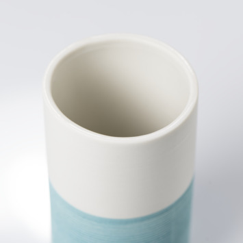 De handgeschilderde Sealskin Tandenborstelhouder Doppio Aqua is uitgevoerd in porselein. De geribbelde onderkant en een gladde bovenkant vormen een geraffineerde combinatie van kleur en materiaal die daarbij ook stevig in de hand ligt.
