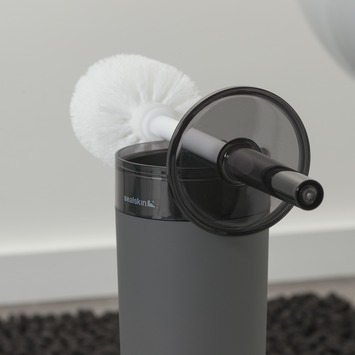 De Sealskin Toiletborstel met houder Bloom Grijs is gemaakt uit sterk kunststof. De bovenkant van de wc-borstelhouder is uitgevoerd in glanzend donkergrijs en het onderste gedeelte heeft dezelfde basiskleur in een matglas uitvoering. De houder is geschikt om op de grond te plaatsen en biedt ruimte voor 1 wc-borstel. De moderne ronde look zorgt er voor dat dit toiletborstelgarnituur past in elke badkamer of toiletruimte. Deze Bloom serie van Sealskin bestaat nog uit een beker en een zeepdispenser. Deze Bloom sanitaire accessoire reeks is ook verkrijgbaar in het wit.
