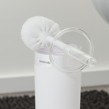 De Sealskin Toiletborstel met houder Bloom Wit is gemaakt uit sterk kunststof. De bovenkant van de wc-borstelhouder is uitgevoerd in glanzend wit en het onderste gedeelte heeft dezelfde basiskleur in een matglas uitvoering. De houder is geschikt om op de grond te plaatsen en biedt ruimte voor 1 wc-borstel. De moderne ronde look zorgt er voor dat dit toiletborstelgarnituur past in elke badkamer of toiletruimte. Deze Bloom serie van Sealskin bestaat nog uit een beker en een zeepdispenser. Deze Bloom sanitaire accessoire reeks is ook verkrijgbaar in het donkergrijs.