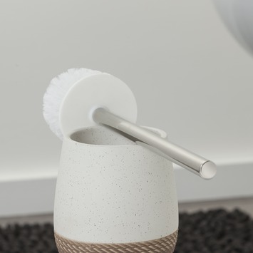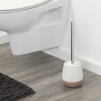 De Sealskin Toiletborstel met houder Braid Wit is gemaakt uit keramiek. De zandtinten en de vormgeving zorgen ervoor dat deze wc-borstelhouder perfect past in een landelijke badkamer of toilet. Het onderste gedeelte van de toiletborstelgarnituur heeft een voelbare touwstructuur. De wc-borstelhouder plaats je op de grond en heeft ruimte voor 1 wc-borstel. De Sealkin serie Braid bestaat ook nog uit een beker en zeepdispenser. De Braid reeks is ook verkrijgbaar in grijstinten.