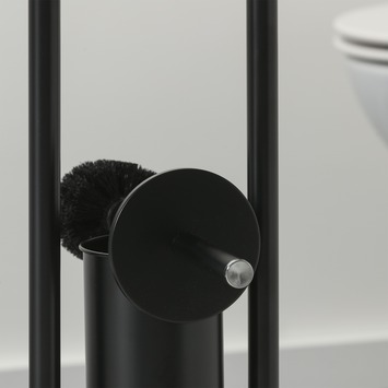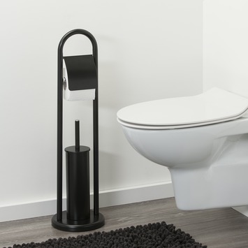Het Sealskin Toiletrek Acero Metaal Zwart is een onmisbare butler in jouw toilet. Het combineert een toiletrolhouder en toiletborstel met houder op een en hetzelfde standaard. Met zijn 70,5 cm hoog, 19 cm breed en 19 cm diep past dit vrijstaande toiletrek in ieder toilet en je hebt geen boorgaten nodig om de toiletaccessoires te installeren. Bovendien kun je het altijd neerzetten waar jij het wil. Dat biedt je een hoop flexibiliteit in de kleinste ruimte van het huis. De zwart metalen afwerking heeft een robuuste uitstraling en past in ieder landelijk of industrieel interieur. Op het rek krijg je 1 jaar garantie. Het is wel belangrijk dat je de set regelmatig schoonmaakt met een vochtige doek, zo heb je lang plezier van jouw eigen toiletbutler.