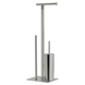 Het Sealskin Toiletrek Square Metaal Chroom is een onmisbare butler in jouw toilet. Het combineert een toiletrolhouder, toiletborstelhouder en reserverolhouder op een en hetzelfde standaard. Met zijn 73,5 cm hoog, 27,5 cm breed en 19,8 cm diep past dit vrijstaande toiletrek in ieder toilet en je hebt geen boorgaten nodig om de toiletaccessoires te installeren. Bovendien kun je het altijd neerzetten waar jij het wil. Dat biedt je een hoop flexibiliteit in de kleinste ruimte van het huis. De chromen afwerking heeft een luxe uitstraling en past in ieder interieur. Op het rek krijg je 1 jaar garantie. Het is wel belangrijk dat je de set regelmatig schoonmaakt met een vochtige doek: zo heb je lang plezier van jouw eigen toiletbutler.