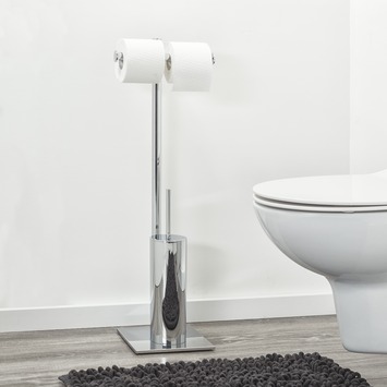 Het Sealskin Toiletrek Tube Metaal Chroom is een onmisbare butler in jouw toilet. Het combineert een toiletrolhouder en toiletborstelhouder op een en hetzelfde standaard. Er is zelfs ruimte voor een extra wc rol! Met zijn 76 cm hoog, 26,3 cm breed en 19,7 cm diep past dit vrijstaande toiletrek in ieder toilet en je hebt geen boorgaten nodig om de toiletaccessoires te installeren. Bovendien kun je het altijd neerzetten waar jij het wil. Dat biedt je een hoop flexibiliteit in de kleinste ruimte van het huis. De chromen afwerking heeft een luxe uitstraling en past in ieder interieur. Op het rek krijg je 1 jaar garantie. Het is wel belangrijk dat je de set regelmatig schoonmaakt met een vochtige doek, zo heb je lang plezier van jouw eigen toiletbutler.