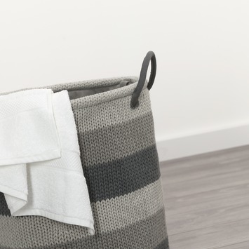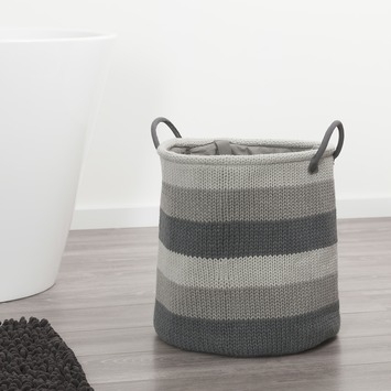 De Sealskin Wasmand Knitted 36x38 cm Grijs is gemaakt uit grijs-kleurig gebreid textiel en is een echte eyecatcher voor elke eigentijdse badkamer. De gebreide structuur is zacht, maar de acrylvezel maakt de stof sterk. Deze mand heeft een inhoud van 35 liter met diameter van 36 cm en een hoogte van 38 cm. De linnenmand heeft twee textielen handgrepen zodat deze eenvoudig verplaatst kan worden. De wasmanden van Sealskin zijn in meerdere uitvoeringen verkrijgbaar en daardoor altijd goed te combineren met de Sealskin douchegordijnen.