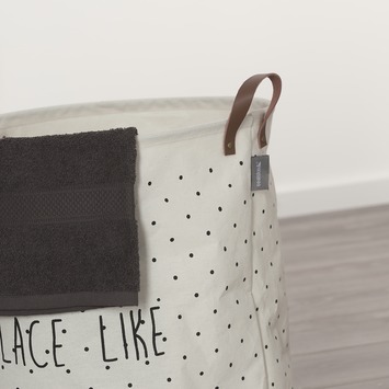 De Sealskin Wasmand Lyrics 40x50 cm Ecru is gemaakt uit ecru-kleurig textiel en is een echte eyecatcher. Door de stippeltjes print en de tekst is dit een leuke wasmand voor jouw huiselijke badkamer. Deze mand heeft met de diameter van 40 cm en de hoogte van 50 cm een inhoud van 60 liter. De linnenmand heeft twee lederlook handgrepen zodat deze eenvoudig verplaatst kan worden. De wasmanden van Sealskin zijn in meerdere uitvoeringen verkrijgbaar en daardoor altijd goed te combineren met de Sealskin douchegordijnen.