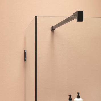 De volledig profielloze serie 'I AM' is met recht een transparante alleskunner. Naast diverse standaard maatvoeringen zijn talloze maatwerkoplossingen mogelijk. Zo kunnen we de breedte en hoogte aanpassen, maar bijvoorbeeld ook eventuele schuintes in de muren of het plafond opvangen. Deze Sealskin zijwand voor swingdeur I AM 120x200cm zwart, voor combinatie met een draaideur, zit met twee strak vormgegeven mat zwarte muurklemmen op de muur. Het veiligheidsglas van maar liefst 8mm is altijd voorzien van een antikalk laag waardoor kalk en viezigheid zich minder snel hecht. I AM douchewanden zijn ook beschikbaar in de standaardmaat 900 mm en 1000mm en natuurlijk als maatwerk oplossing. Deze zijwand en bijpassende draaideur zijn tevens beschikbaar in de afwerking met RVS en in glanzend chroom. Ook zijn bij Gamma zijwanden te kopen met een gesatineerde band in het glas.