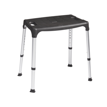 De SecuCare douchekruk Quattro zwart is in de hoogte verstelbaar van 39-54 cm. De douchekruk heeft een rechthoekig kunststof zitvlak en is voorzien van een anti-slip laag en afwateringsopeningen. De douchekruk Quattro kan maximaal 150 kg dragen. De douchekruk is vervaardigd van hoogwaardig kunststof en heeft aluminium geanodiseerde aluminium pootjes met anti-slip doppen. De kruk is geschikt voor een vochtige ruimte en is eenvoudig te reinigen.