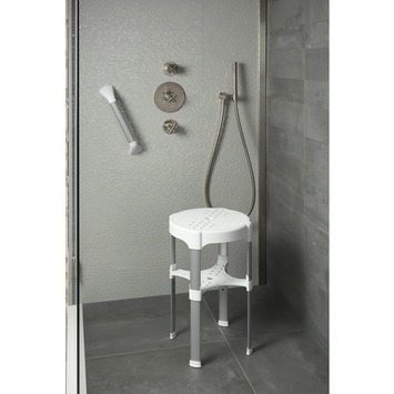 Stevige en fijne douchekruk. Het onderste deel van de poten kan verzet worden. De kruk voelt veilig en degelijk.