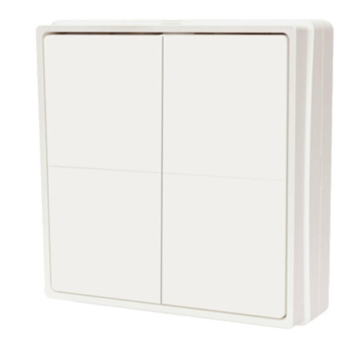 De Shelly Blu Wall Switch 4 draadloze wandschakelaar Bluetooth (4 knoppen) is een slimme schakelaar die je overal kunt plaatsen. Je monteert hem in een standaard schakelframe of gebruikt hem los als afstandsbediening. Dankzij Bluetooth werkt hij zonder kabels en reageert hij direct. Zo voeg je eenvoudig draadloze bediening toe voor verlichting, apparaten of scènes in je woning.