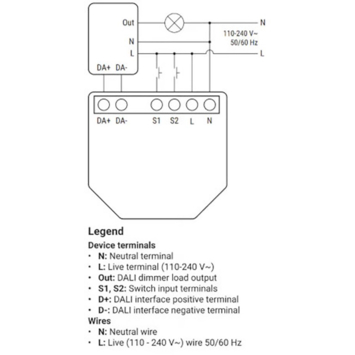 Met deze module voeg je DALI-verlichting toe aan je Smart Home systeem. Je kunt de schakelaar gewoon zoals normaal blijven gebruiken. De module voegt alleen slimme functies toe. Je kunt lampen draadloos dimmen, schakelen of opnemen in scènes zodat ze automatisch reageren op je dagelijkse ritme. Zo gebruik je dezelfde slimme functies als bij gewone verlichting, maar dan toegepast op een professioneel DALI-netwerk.