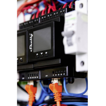 Je klikt de module rechtstreeks op de DIN-rail en sluit hem aan op 110–240 V. Via WiFi, LAN of Bluetooth maak je verbinding met de Shelly Smart Control-app om schema’s, scènes en meldingen in te stellen. De ingebouwde energiemeter helpt je bij het bekijken van verbruik per kanaal, wat vooral handig is bij meerdere vaste apparaten. Zo voeg je zonder extra kastjes of hubs slimme functies toe.
