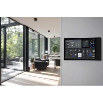 - Bedient verlichting, rolluiken, scènes en audio via één display
