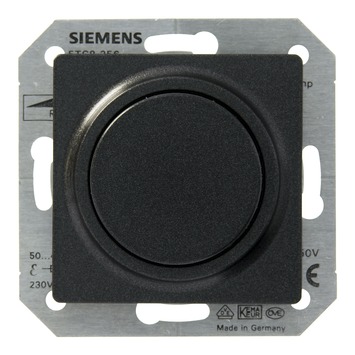 De Siemens Delta dimmer gloei-/halogeenlamp antraciet is geschikt voor het dimmen van 230V gloei- en halogeenlampen met een aansluitwaarde tussen de 50 en 400watt. Let erop dat de lamp die u op de dimmer aansluit een wattage heeft dat binnen dit bereik valt. Bij een wattage lager dan 50watt gaat de lamp storen, bij een wattage hoger dan 400watt kan de dimmer beschadigd raken. Deze antracietkleurige Delta dimmer kunt u inbouwen en ook toepassen in een wisselschakeling. Dit betekent dat u de verlichting vanaf twee verschillende plaatsen kunt bedienen. U moet hiervoor een dimmer en een wisselschakelaar gebruiken. De Delta-serie van Siemens heeft een kenmerkende elegante uitstraling en een stijlvolle vormgeving.