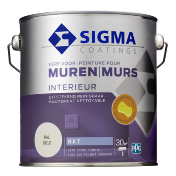 Sigma muurverf reinigbaar mat RAL 9010 2,5 liter
