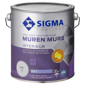Sigma muurverf reinigbaar mat wit base ln 2,5 l