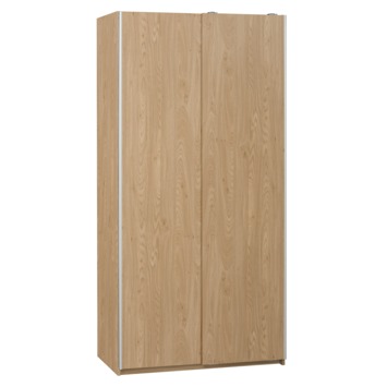 Uw spullen bergt u snel en eenvoudig op in de handige Zweefdeurkast Sigma Eiken 100cm. Sigma is een smalle, functionele kast die uitgevoerd is met zweefdeuren. Deze zweefdeuren zijn voorzien van strakke metalen greeplijsten en een stofstrip die stof tegenhoudt. De Zweefdeurkast Sigma Eiken 100cm is uitgevoerd in een eikenkleur, waardoor deze een fraaie uitstraling heeft. Sigma is tevens leverbaar in andere kleurstellingen. De kast heeft een groot hanggedeelte met boven de roede een legplank. Door uitbreiding met extra legplanken en/of een ladeblok creëert u bovendien nog meer opberggemak. Zweefdeurkast Sigma Wit 100cm is dan ook een aanwinst voor elke woning.
