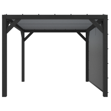 De Silvano pergola vurenhout zwart 324 x 324 cm met schaduwdoek en zijdoek geeft je een beschutte plek in de tuin tegen zon en inkijk. De pergola is 256 cm hoog en heeft een opstelling van 328 cm breed en 324 cm diep, afhankelijk van de zijde waar je het zijdoek bevestigt. Zo pas je de pergola aan aan jouw tuin en zithoek.