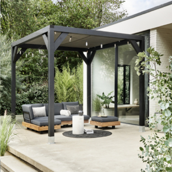Silvano pergola zwart vurenhout 324 x 324 cm met schaduwdoek