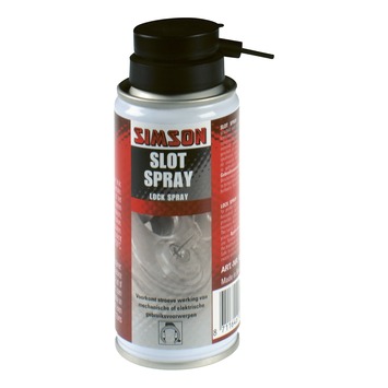 De Simson slot spray 100ml is een speciaal vetvrij smeermiddel. Zeer geschikt voor het smeren van profielcilinders, autosloten, gereedschap, kantoormachines, huishoudelijke apparatuur, tuingereedschap, etc. De spray biedt een corrosie werende werking tegen zout, water en vocht. Ook zeer geschikt als contactspray voor elektronica. De Simson Slot Spray wordt geleverd in een 100ml spuitbus met spuitmond om de spray eenvoudig op de gewenste plaats aan te brengen. Voor gebruik schudden, op het te behandelen onderdeel spuiten en laten inwerken. Na een paar minuten de overtollige resten verwijderen met een schone doek.