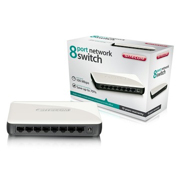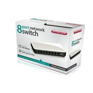 Met deze netwerkswitch sluit u tot acht netwerkapparaten aan en kunt u eenvoudig bestanden en randapparatuur delen met alle aangesloten gebruikers. De switch is uitgerust met een processor die ervoor zorgt dat gegevens op intelligente wijze tussen de computers worden verzonden, en staat garant voor een zeer betrouwbare overdrachtsnelheid van 100 Mbps. De switch is bijzonder gebruiksvriendelijk en volledig Plug-and-Play waardoor installatie en configuratie overbodig zijn.