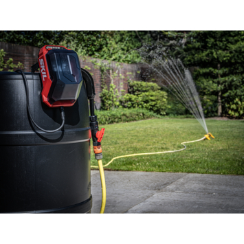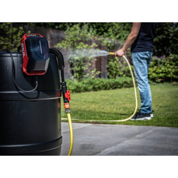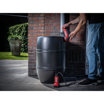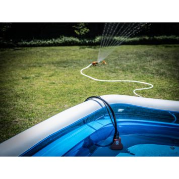 De pomp kan eenvoudig aan elke regenton worden bevestigd met de geïntegreerde ophanghaak voor snelle installatie. De ingebouwde schroefgaten en het waterdichte, draagbare batterijcompartiment zorgen voor extra flexibiliteit, zodat montage overal in de tuin mogelijk is. Deze dompelpomp zuigt water op uit een diepte tot 2 meter en werkt bij temperaturen tot 35°C.