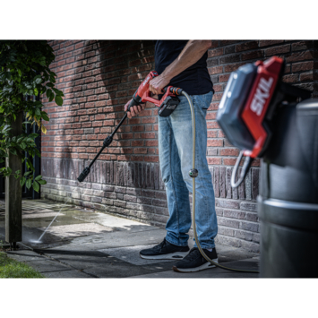 De SKIL 0781 CA wordt geleverd met een slang van 2,5 meter, een houder, een kraan en een ‘Easy Storage’-haak. De accu en oplader zijn niet inbegrepen.