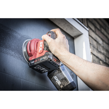De „20V Max” 3751 excentrische accu-schuurmachine maakt deel uit van het compacte borstelloze assortiment van SKIL. Deze gereedschappen zijn extreem compact en bieden een combinatie van hoge prestaties, duurzaamheid en een ongeëvenaard niveau van gemak. Onze borstelloze motor is sneller, krachtiger en heeft een 10 keer langere levensduur dan een gebruikelijke motor met koolborstels. Net als alle andere SKIL „20V Max” accugereedschappen wordt dit model aangedreven door de toonaangevende „PWRCORE 20™” accu- en opladertechnologie. Borstelloze excentrische accu-schuurmachine SKIL 3751 is uw ideale partner bij het schuren van zowel vlakke als gebogen oppervlakken. Deze machine biedt optimale controle bij bediening met één hand dankzij het extreem compacte ontwerp en het balanceersysteem „VRS” dat met contragewichten werkt en trillingen vermindert. Door de efficiënte excentrische schuurbewegingen is de machine bij uitstek geschikt voor zowel fijn schuurwerk als afbramen. En dankzij de vooraf instelbare variabele snelheidsregeling kan de snelheid aan de klus worden aangepast. Schoon werken wordt gegarandeerd dankzij de geïntegreerde stofafzuiging met microfiltersysteem. Maar als u liever een stofzuiger gebruikt, kunt u ook de stofzuigeradapter aansluiten. Een ander voordeel van dit model is de geïntegreerde remfunctie die beschadiging van het werkstuk voorkomt die zou kunnen ontstaan, wanneer het gereedschap op het werkstuk wordt geplaatst of hiervan wordt verwijderd. En de hoogwaardige stofdichte kogellagers zorgen ervoor dat er geen stof bij kritische inwendige onderdelen komt, zodat de levensduur van het gereedschap wordt verlengd. SKIL 3751 CA wordt geleverd met 10 vellen schuurpapier, een microfilter-stofcontainer en een stofzuigeradapter. De accu en oplader zijn niet inbegrepen.