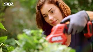 De „20V Max” (18V) SKIL 0630 is een 2-in-1 accustruik- en grasschaar. Het lichte en compacte ontwerp van de schaar zorgt voor optimaal werkcomfort. Dankzij het grote struik- en grasmes is de schaar perfect om gemakkelijk gras te trimmen en om kleine heggen, struiken en buxussen in vorm te snoeien. Het gereedschapsloze 'CLIC'-meswisselsysteem maakt moeiteloos wisselen tussen het grasschaarmes en struikschaarmes mogelijk. Het struikschaarmes is 20 cm lang en heeft een tandafstand van 8 mm. Het grasschaarmes heeft een mesbreedte van 12 cm. Bovendien is de schaar uitgerust met het SKIL „Easy Storage”-ontwerp voor netjes opbergen van uw tuingereedschap. De SKIL 0630 CA wordt geleverd met een struikmes, een grasmes, twee mesbeschermers en een „Easy Storage”-haak.