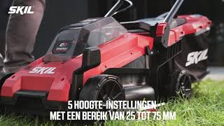 De SKIL 0130 is een borstelloze accugrasmaaier met de prestaties van „40V Max” door twee „20V Max” accu's. Hij is ideaal voor het maaien van kleine tot middelgrote gazons dankzij de maaibreedte van 34 cm en borstelloze motor die sneller, krachtiger en een 10 keer langere levensduur heeft dan een vergelijkbare motor met borstels. Deze maaier is uitgerust met de SKIL „Grass Guide” om efficiënt dichtbij muren en randen te maaien. Voor een optimale maai-ervaring kan je de maaihoogte eenvoudig aanpassen aan de condities van het gazon. De SKIL 0130 heeft vijf hoogte-instellingen tussen 25 en 75 mm die met de centrale handgreep kunnen worden aangepast. Dankzij het exclusieve „Easy Storage”-ontwerp van SKIL kunnen de handgrepen snel en gemakkelijk in- en uitgeklapt worden en neemt dit gereedschap na gebruik bijna geen ruimte in beslag. De SKIL 0130 BA wordt geleverd met twee „20V Max” (18 V) 2,0 Ah „Keep Cool™”-accu's, een snellader, een grasopvangbak en sleutel.