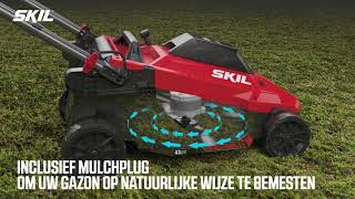 De SKIL 0140 is een borstelloze accugrasmaaier met de prestaties van 40V Max door twee 20V Max accu's. Hij is ideaal voor het maaien van grote gazons dankzij de grote maaibreedte van 43 cm en borstelloze motor die sneller, krachtiger en een langere levensduur heeft dan een vergelijkbare motor met borstels. Deze maaier is uitgerust met de SKIL Grass Guide om efficiënt dichtbij muren en randen te maaien. Voor een optimale maai-ervaring kunt u de maaihoogte eenvoudig aanpassen aan de condities van uw gazon. De SKIL 0140 heeft zes hoogte-instellingen tussen 25 en 75 mm die met de centrale handgreep kunnen worden aangepast. Drie werkhoogte-instellingen zorgen voor een flexibele werkhoogte voor maaien zonder vermoeidheidsverschijnselen. Dankzij het exclusieve Easy Storage-ontwerp van SKIL neemt dit gereedschap na gebruik bijna geen ruimte in beslag. De SKIL 0140 BA wordt geleverd met twee 20V Max (18 V) 4,0 Ah Keep Cool-accu's, een snellader, een grasopvangbak, mulchset, sleutel en zeskantsleutel.