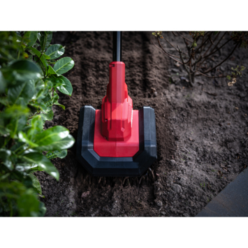 Het ergonomische handvat biedt extra comfort, terwijl de beschermkappen u beschermen tegen opspattende aarde en vuil.