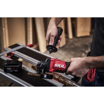 De „20V Max” (18 V) SKIL 3923 is een krachtige haakse accuslijper die compatibel is met schijven van 125 mm. Dit gereedschap is ideaal voor eenvoudig en gecontroleerd slijpen en doorslijpen dankzij de softgrip en slanke greepomtrek. Voor extra comfort en veiligheid zorgt de elektronische softstart ervoor dat het maximale toerental geleidelijk wordt bereikt zonder terugslag.Dankzij het „CLIC”-systeem kunt u de beschermkap probleemloos zonder hulpgereedschap verstellen, zodat u vonken in elke gewenste richting af kunt buigen. En u kunt de zijhandgreep dankzij de drie comfortabele standen eenvoudig op uw klus afstemmen. Het wisselen of vervangen van schijven is praktisch dankzij het handige asvergrendelingssysteem. Herstartbeveiliging zorgt ervoor dat het gereedschap niet automatisch start bij het plaatsen van de accu. Overbelastingsbeveiliging garandeert een langere levensduur van uw gereedschap. De SKIL 3923 CA wordt geleverd zonder accu.