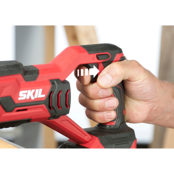 De 20V Max (18 V) SKIL 3470 is een krachtige accu-reciprozaag met variabele snelheid voor de beste resultaten in diverse materialen. Dit is het ideale gereedschap voor een hele reeks zaagwerkzaamheden zoals bij slopen en snoeien (ook van bomen). Goede zichtbaarheid van uw werk wordt gewaarborgd door de LED-lamp. Het wisselen van zaagbladen is nog nooit zo eenvoudig geweest dankzij het Clic-systeem waarvoor geen speciaal gereedschap of sleutel nodig is. Voor uw gemak is dit gereedschap uitgevoerd met een zeer stevige, lichtgewicht aluminium tandwielkast. En de trillingen zijn beperkt dankzij het gebalanceerde hoofdtandwiel. Bovendien kunt u het zaagblad dankzij de verstelbare voetstand efficiënter gebruiken. Tot slot zorgt de softgrip op het gereedschap voor comfort bij het werken. De SKIL 3470 CA wordt geleverd met een zaagblad voor hout. De accu wordt niet meegeleverd.