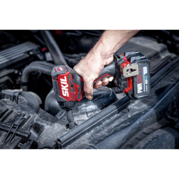 De „20V Max” 3265 accu-draaislagmoeraanzetter is onderdeel van het compacte borstelloze assortiment van SKIL. Deze gereedschappen zijn extreem compact en bieden een combinatie van hoge prestaties en een ongeëvenaard niveau van gemak. Net als alle andere SKIL „20V Max” accugereedschappen wordt dit model aangedreven door de toonaangevende geavanceerde „PWRCORE 20™” accu- en opladertechnologie. Onze SKIL 3265 borstelloze accu-draaislagmoeraanzetter heeft een hoog koppel voor het moeiteloos vastdraaien en losdraaien van bouten en moeren. Dankzij het compacte en lichte ontwerp is boven het hoofd werken of op lastig bereikbare krappe plekken een makkie. De digitale borstelloze motor levert meer vermogen, meer efficiëntie en een 10x langere levensduur dan een vergelijkbare motor met koolborstels. En voor een langere levensduur heeft het gereedschap een robuust, aluminium tandwielhuis. Dit gereedschap heeft drie snelheids-/koppelinstellingen die zorgen voor superieure controle over snelheid en vermogen voor een groot aantal toepassingen. De extra instelling „Reverse control mode” zorgt ervoor dat het gereedschap automatisch stopt met linksdraaien en slag als de bout of schroef eenmaal los is. Fantastische zichtbaarheid van het werkstuk wordt gewaarborgd dankzij de 360° geavanceerde LED-lamp met 2 modi. Kortom, dit veelzijdige gereedschap biedt echt alles wat u nodig heeft: betrouwbare Lithium-Ion accutechnologie, variabele snelheid voor volledige controle en gemakkelijk wisselen van accessoires dankzij de robuuste 3/8” buitenvierkantaandrijving. De SKIL 3265 CA wordt geleverd met een 3/8” naar 1/2” zeskantadapter en een riemclip. De accu en oplader zijn niet inbegrepen.