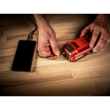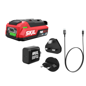 Lithium-Ion „20V Max” 2,0 Ah „KEEPCOOL™” accu met geïntegreerde „PWRASSIST™” USB-C-aansluiting en 45W USB-C PD oplader set.
