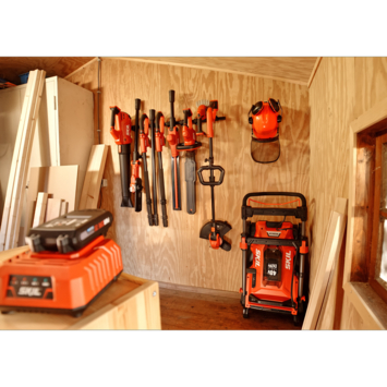 - Geleverd inclusief verlengsteel, mesbeschermer en schouderriem