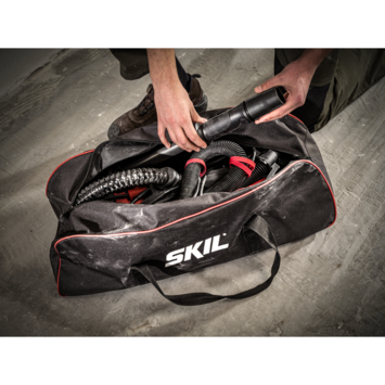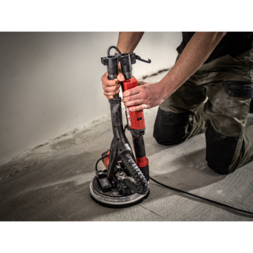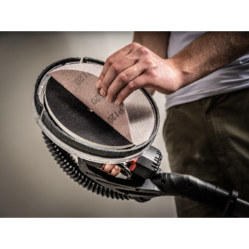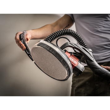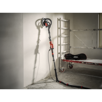 De SKIL 7521 langnekschuurmachine, uitgerust met een krachtige 750 W motor, is ideaal voor het gebruik van schuurpapier met een diameter van 225 mm, waardoor u klussen snel en moeiteloos kunt klaren. Met een verlengstang, een slang, en een netsnoer van 4 meter, evenals een maximale lengte van 1,8 meter, kunt u eenvoudig grote vlakken schuren. Deze schuurmachine beschikt over verschillende elektronische functies, waaronder een zachte aanloop voor soepel starten zonder terugslag, een constant toerental voor consistente resultaten en een overbelastingsbeveiliging die de levensduur van het gereedschap bevordert. Met de instelbare snelheid kunt u de machine bovendien perfect afstemmen op diverse oppervlakken, wat zorgt voor optimale prestaties. De SKIL plafond- en wandschuurmachine is voorzien van vele handige functies om het schuren efficiënter en comfortabeler te maken. De 360° ledverlichting biedt een heldere en gelijkmatige verlichting, zodat u goed zicht heeft op de te schuren oppervlakken. Een afneembaar segment van de borstelbehuizing maakt het mogelijk om dicht bij de randen te schuren. Voor extra gemak helpt een verstelbare schouderriem om het gewicht van uw pols en arm naar uw schouder te verplaatsen, wat de vermoeidheid bij langdurig gebruik vermindert. Bovendien kan het netsnoer aan de slang worden bevestigd om te voorkomen dat u verstrikt raakt of struikelt. De SKIL plafond- en wandschuurmachine is ook praktisch voor transport; de verlengstang kan eenvoudig worden verwijderd en het gereedschap kan worden ingeklapt tot een compacter formaat, zodat het in de meegeleverde draagtas past. Bij het tijdelijk wegzetten van de schuurmachine kan deze op de geïntegreerde beugels worden geplaatst, die ook helpen om de slang vrij van knikken te houden.