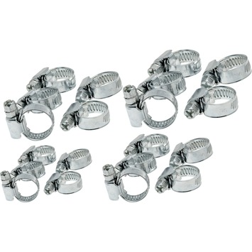 Wil je graag slangen, zoals waterslangen en luchtslangen, aan een tapkraan koppelen? Ga dan voor de slangklem assortiment 20 stuks. Deze slangklemmen zijn gemaakt van verzinkt staal en daarom goed bestand tegen roest. Dankzij dit materiaal gaan de slangklemmen ook lang mee, zelfs wanneer je ze buiten gebruikt. De slangklemmen zijn geschikt voor slangen met een doorsnede van 8mm tot 32mm en monteer je eenvoudig zelf met een schroevendraaier aan een slang. Kortom: dankzij deze slangklemmen zitten jouw slangen voortaan stevig vast.
