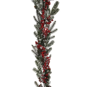 Kerstslinger van dennentakken en rode besjes van 180 cm lang. Te gebruiken voor zowel in de kerstboom als voor bijvoorbeeld op een kaarsenplateau.